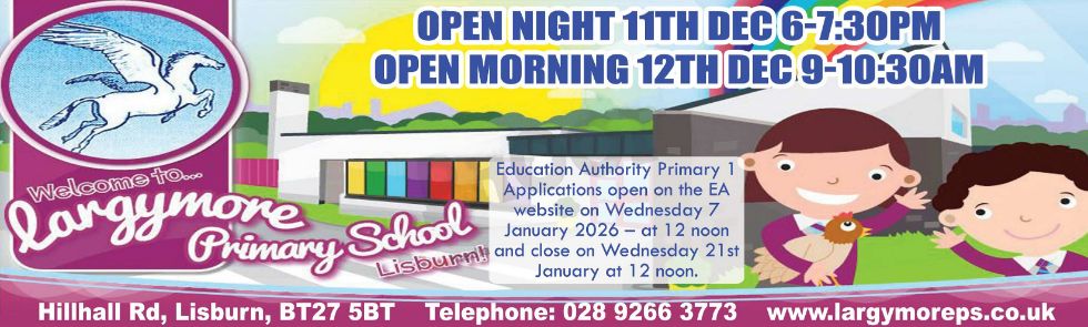 If your child is starting primary school in September 2026, you can apply online between 12.00 noon on Wednesday 7th January 2026 and 12.00 noon on Wednesday 21st January 2026. Please note that places are not allocated on a first come, first served basis and applications will only be considered after the closing date. Further information is available on the EA website under the Admissions section at: https://www.eani.org.uk/parents/admissions